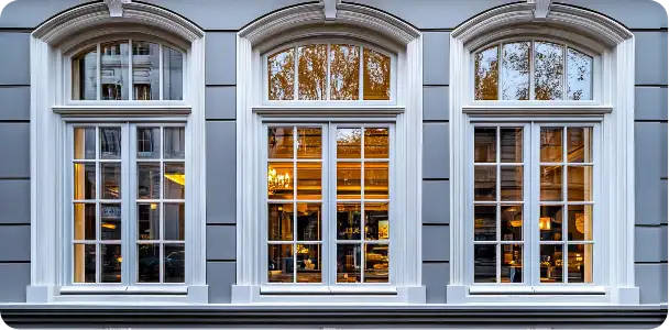 Curved, elegant windows that create a panoramic view and add architectural charm.